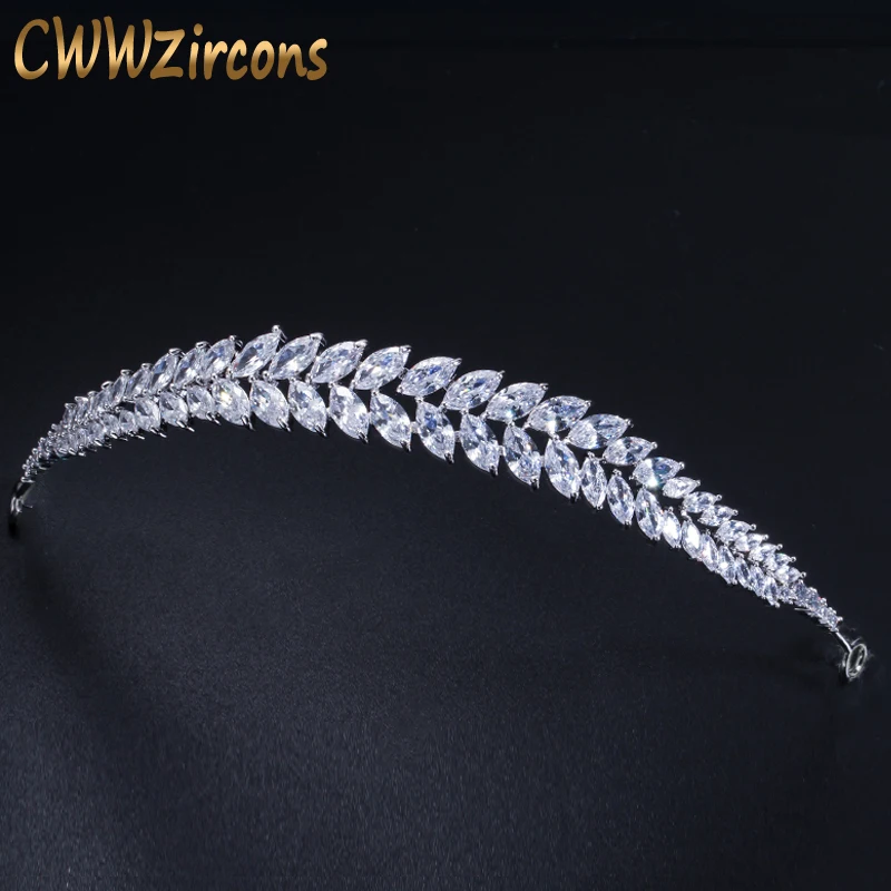 CWWZircons великолепные свадебные аксессуары для волос Тиара листьев Форма кубического циркония голову для невесты A002