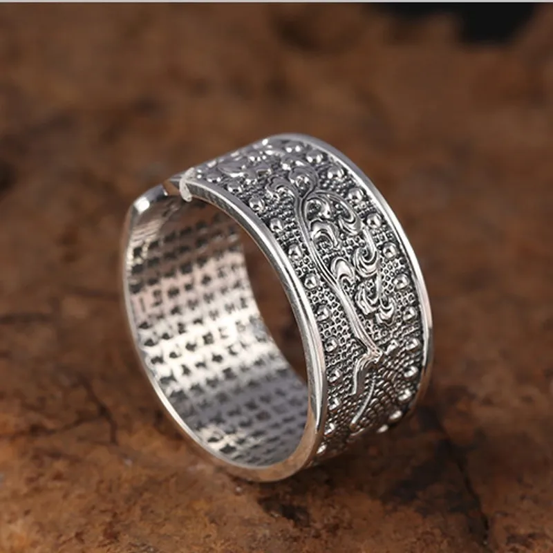 Настоящее S999 чистое серебро Рыбы Сердце сутра, регулируемые мужские и женские кольца тайские серебряные винтажные надписи Писание на удачу кольцо