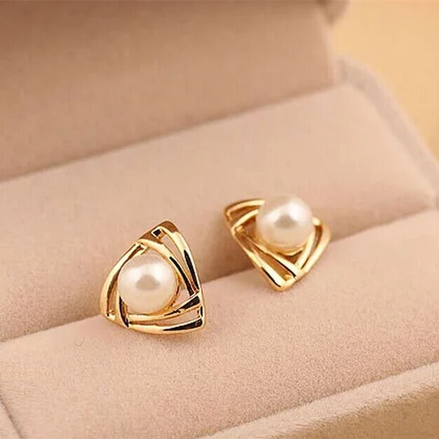 2017 сплав из цинка сплав женский трендовый Er133 Горячая Мода Имитация Жемчуга Серьги Геометрические треугольные серьги-гвоздики для женщин ювелирные изделия