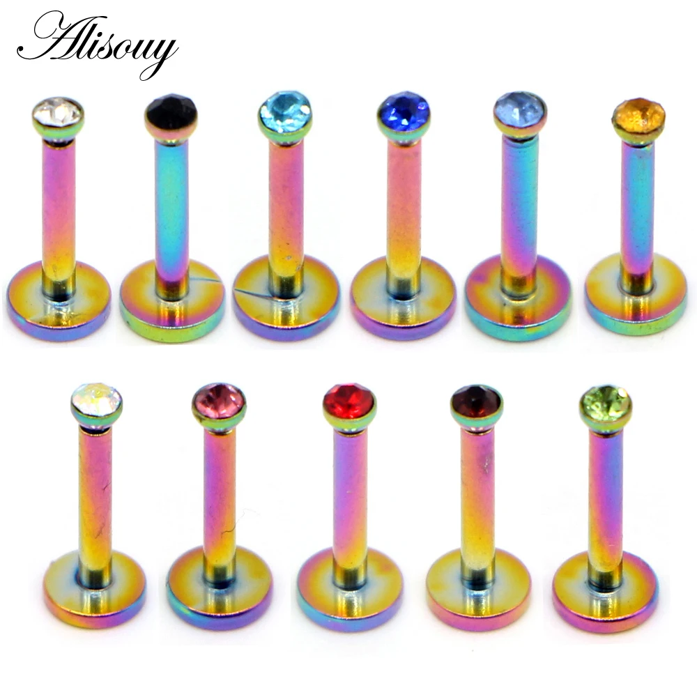 Alisouy 1 шт. 16 г 2 мм Gem 316L Нержавеющая сталь Кристалл уха козелка Helix Cartiliage пирсинг серьги кольцо губ губная украшения для тела