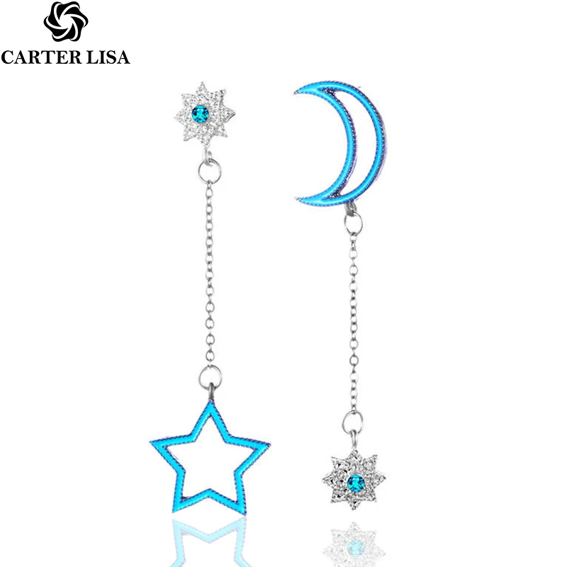 Женские длинные висячие серьги CARTER LISA с синими звездами, висячие серьги с листьями и перьями, ювелирное изделие
