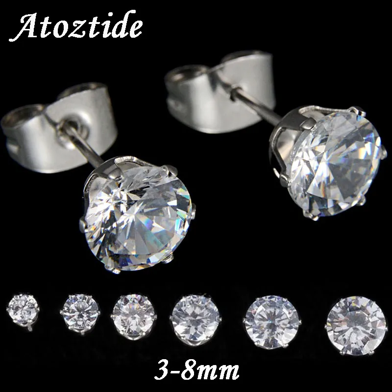 Atoztide 3-8 мм мода кубического циркония серьги для Для женщин Серебряный Цвет круглый пирсинг серьги себе подарок ювелирных изделий
