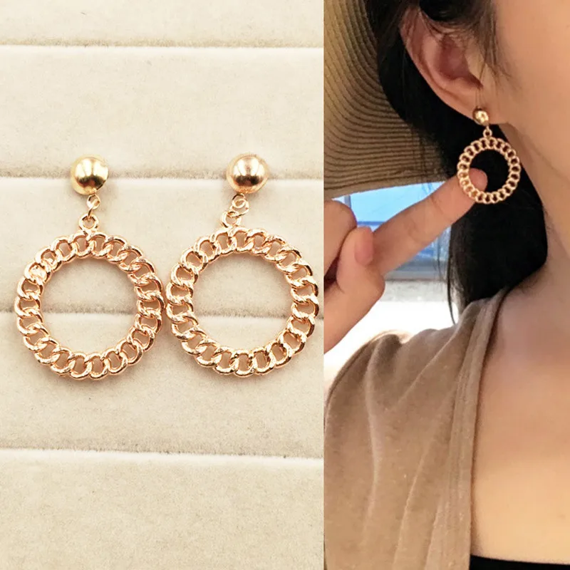 Новая мода горячая Распродажа преувеличенная цепочка кольцо серьги полые подготовки металла личности женские богемные ювелирные изделия ...
