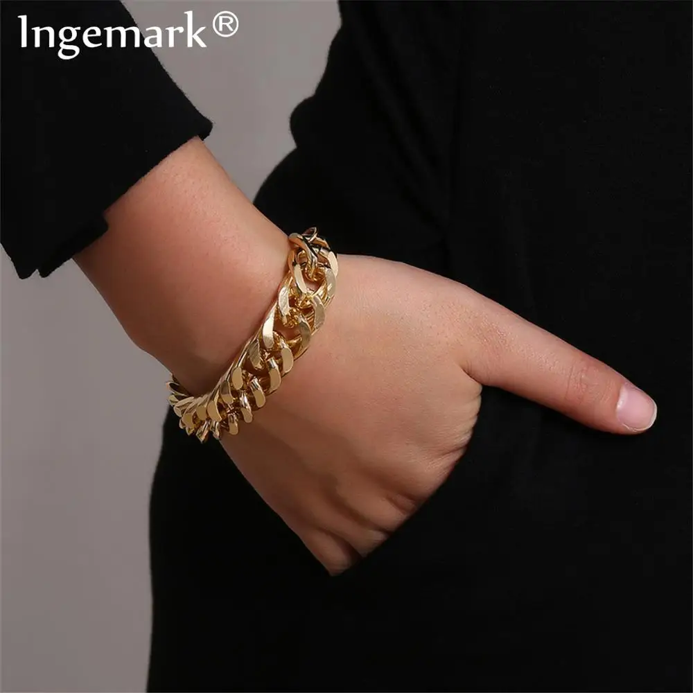 Женский браслет на цепочке Ingemark, панк, Miami, с массивным металлическим замком