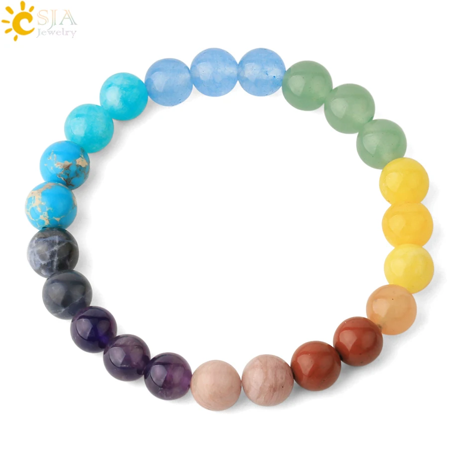 Женский браслет CSJA Healing, 7 чакр, браслет из натурального камня с кристаллами, Femme 2020, рейки, 8 мм, круглые бусины, амулет, браслет S552