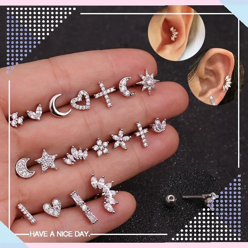 1 шт. Золотая белая луна звезда цветок сердце крест маркиза сталь Штанга CZ Tragus Diath хрящевая спираль Грач пирсинг серьги