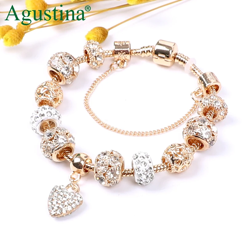 Женский браслет с бусинами Agustina 2020, браслет с сердечком, Модный Ювелирный Браслет с кристаллами, роскошный браслет с золотыми пуговицами и стразами