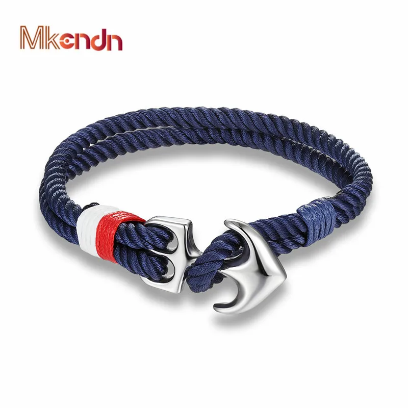 Mkendn высокое качество якорь Браслеты Для мужчин Шарм морской веревки выживания цепь-паракорд браслет мужской Обёрточная бумага из металла с...