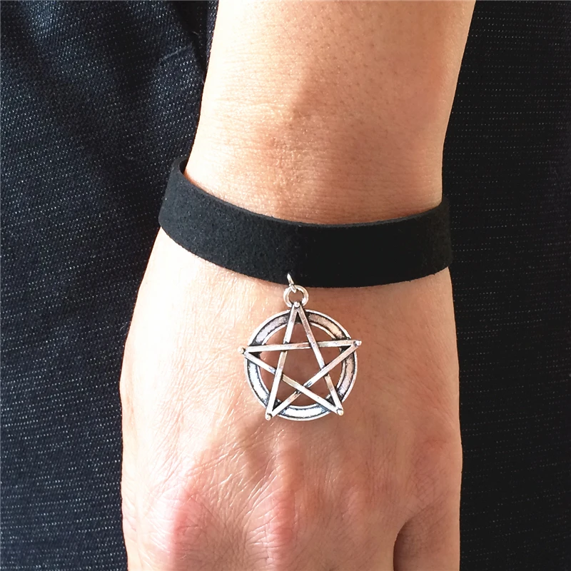 Горячее предложение DIY Bijoux простой черный бархатной лентой Винтаж неограниченное пятиконечная звезда Подвеска Браслет Для женщин и Для муж...