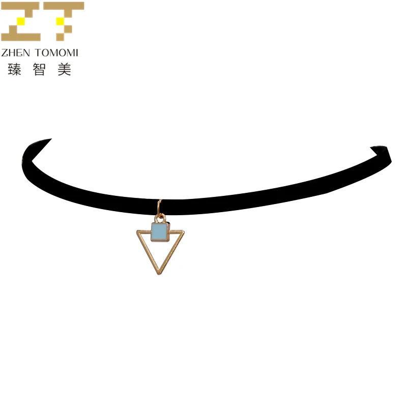 Горячая Мода ожерелье колье бархатная кожа геометрические треугольники Подвески Макси себе Чокеры Цепочки и ожерелья для 2017, женская обувь...
