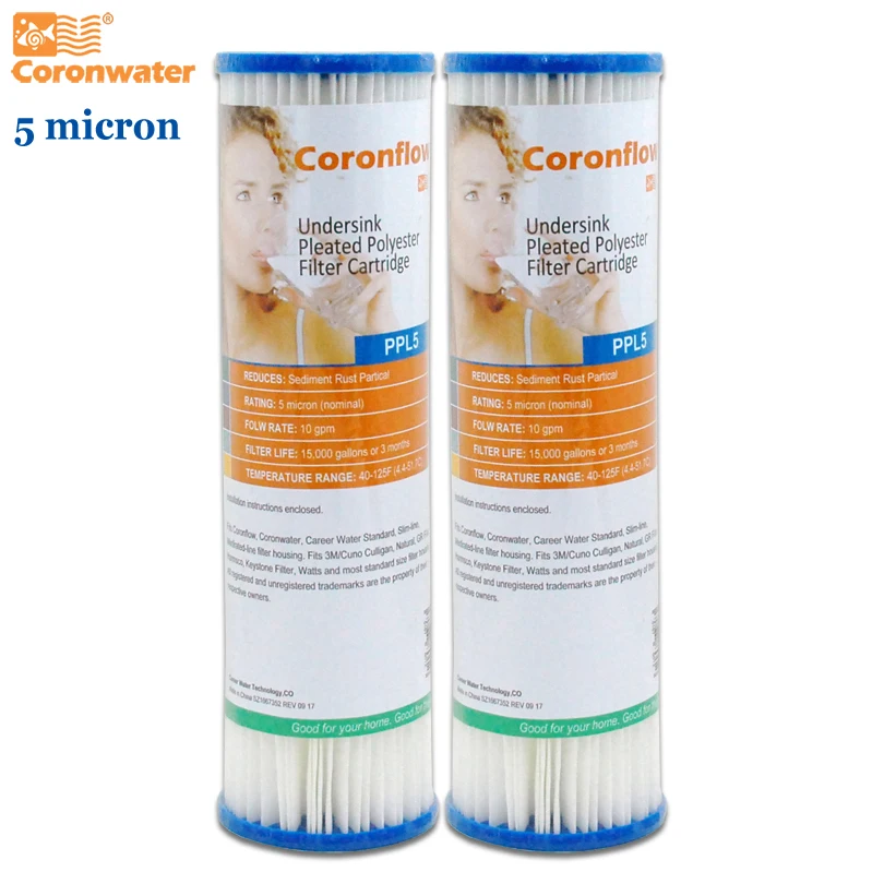 Coronwater 2,5 "х 10" плиссированные полиэстер фильтр для воды картриджей 5 микрон, высокий расход наносов для фильтр для воды