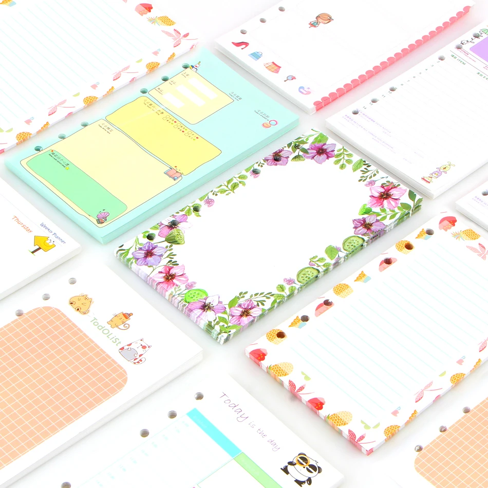 A5 A6 Kawaii Цветной Diario заправки связующий наполнитель Бумага 6 отверстий внутренние страницы планировщик организатор наполнитель Бумага для ...