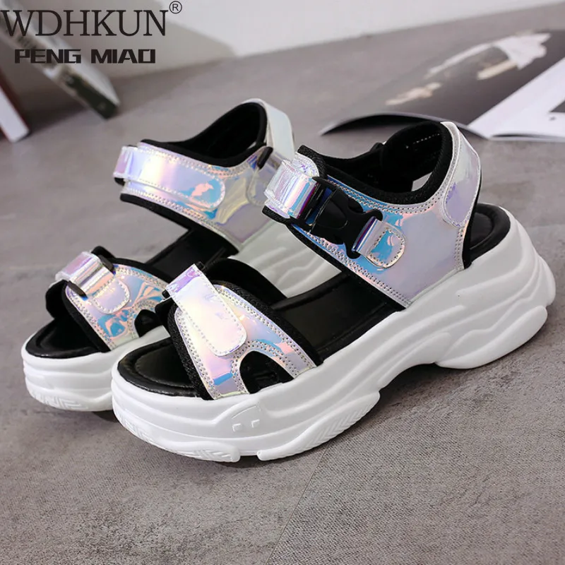 Пикантные женские спортивные сандалии с открытым носком; женские босоножки на танкетке с вырезами; крутая Уличная обувь на платформе; женская пляжная Летняя обувь; Новинка 2020 года