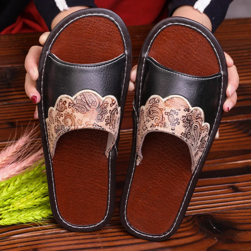 Каменная деревенская обувь; большие размеры 35-44; летние домашние тапочки; нескользящие кожаные тапочки для пар; мужские и женские Тапочки