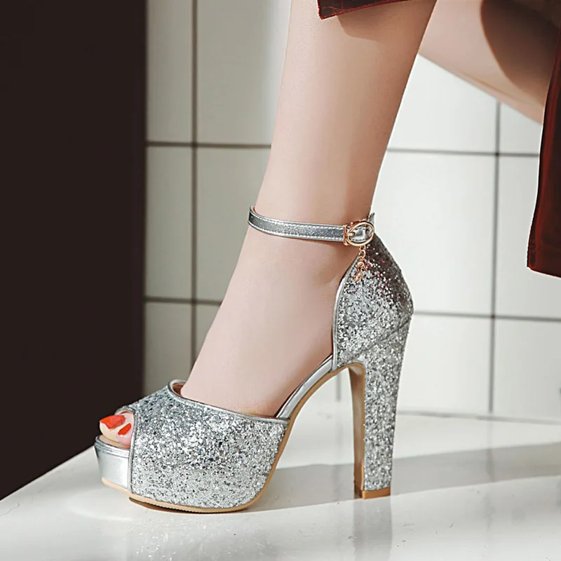Женские туфли-лодочки на высоком каблуке с пряжкой и ремешком; модные удобные модельные туфли на платформе с блестками для вечеринок; цвет черный, розовый, белый, коричневый