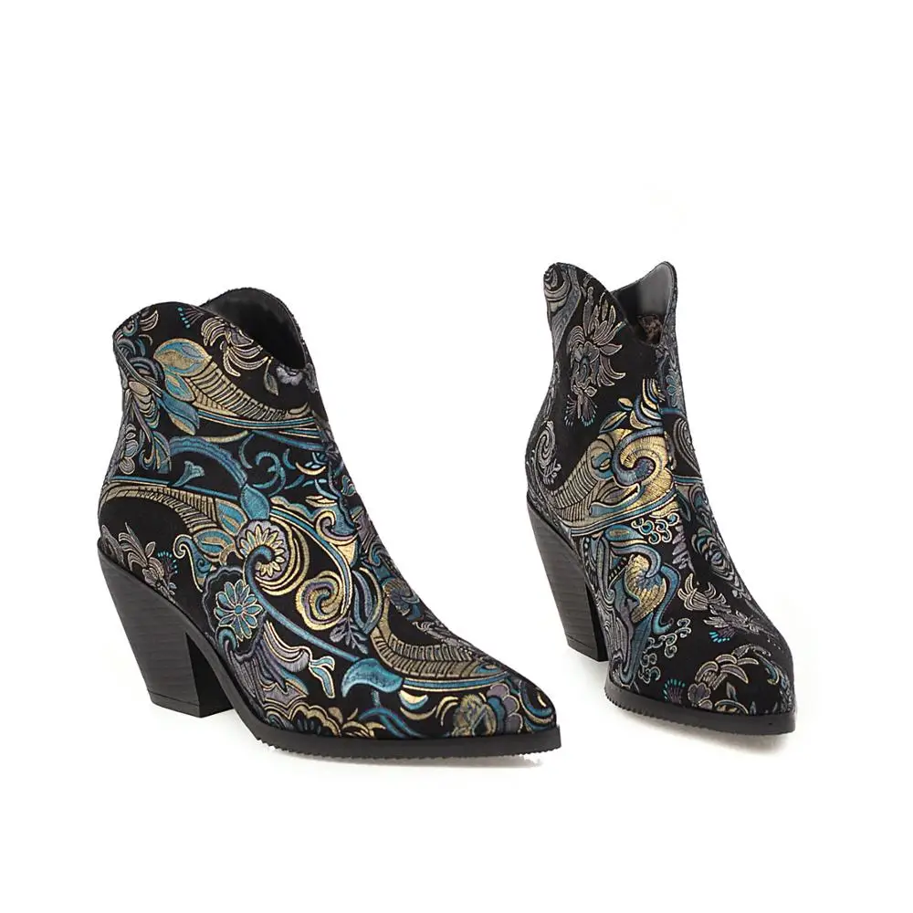2019 острый носок Западная пастушка сапоги ботильоны «челси» обувь Для женщин казаки ковбойские ботинки на танкетке; женская обувь на плоской подошве; Botas Mujer33-45