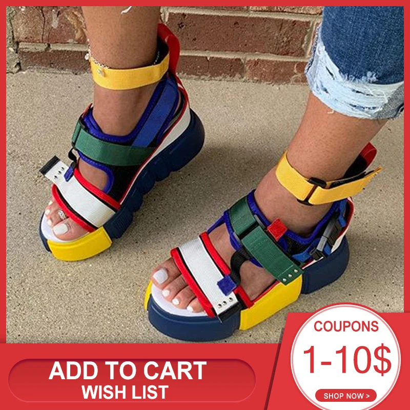 Женские цветные сандалии на липучке с открытым носком на платформе; Сезон лето; Модная Повседневная пляжная обувь; 4 цвета; s; 2020