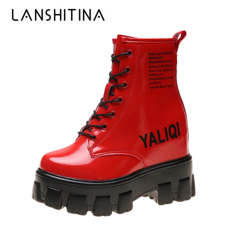 Новые женские ботильоны; коллекция 2019 года; сезон осень; высокие кроссовки из лакированной кожи; ботинки на массивной платформе на высоком каблуке 10 см; зимние ботинки на толстой подошве