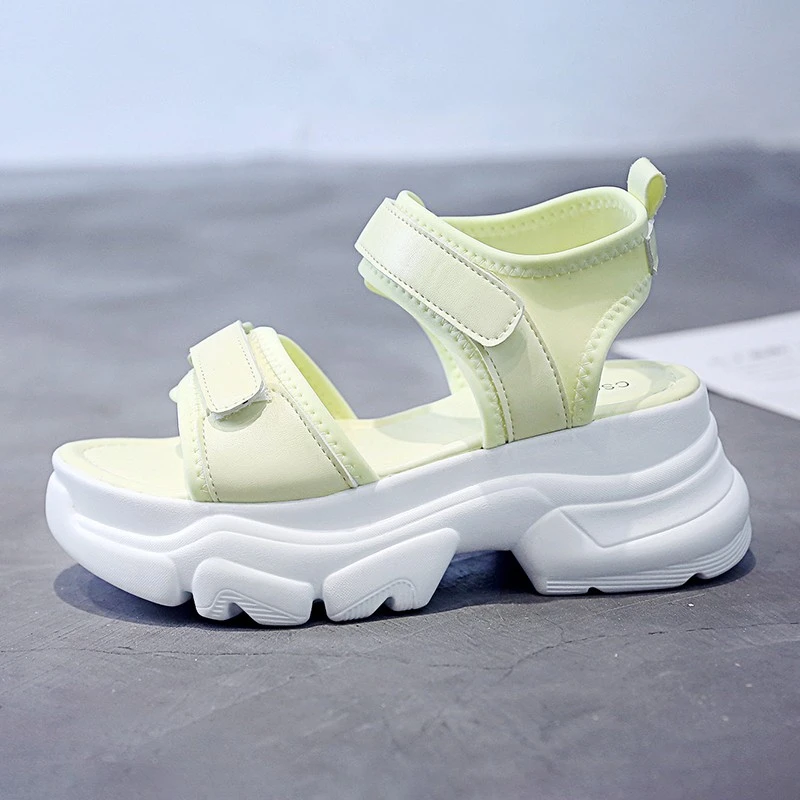 Women Chunky Sandals Platform Concise Designers Solid Open Toe Brand Fashion Woman Wedge Sandal Hook Loop Beach Casual Shoes