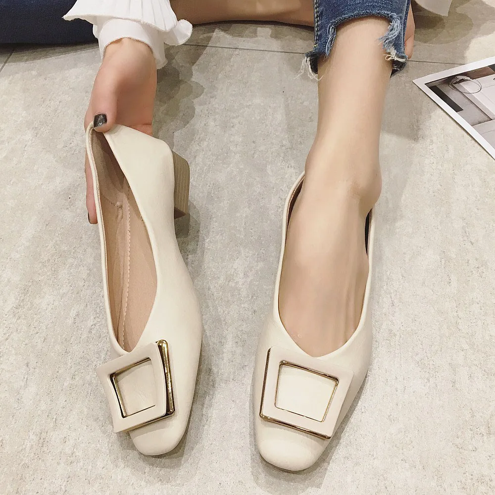 2019 брендовые новые весенние милые бежевые черные женские повседневные туфли-лодочки на среднем массивном каблуке, женские туфли телесного ...