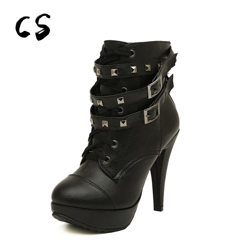 Cuculus/Новинка 2019 года, прочные непромокаемые ботинки martin на платформе и высоком каблуке с заклепками, женская обувь с круглым носком и пряжко...