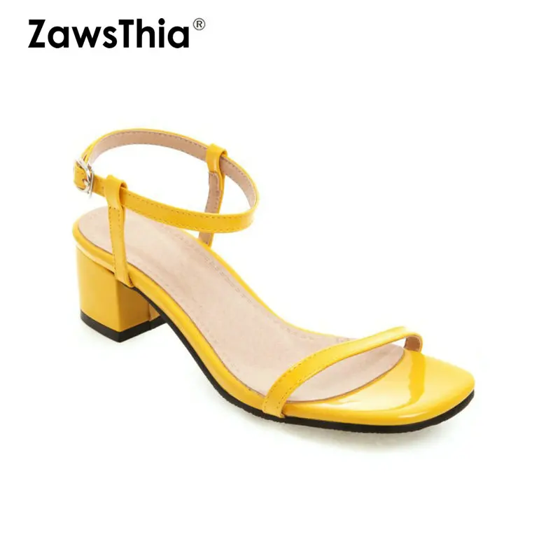 ZawsThia/Женская обувь из лакированной искусственной кожи желтого, белого и красного цветов, женские сандалии-гладиаторы на высоком массивном ...