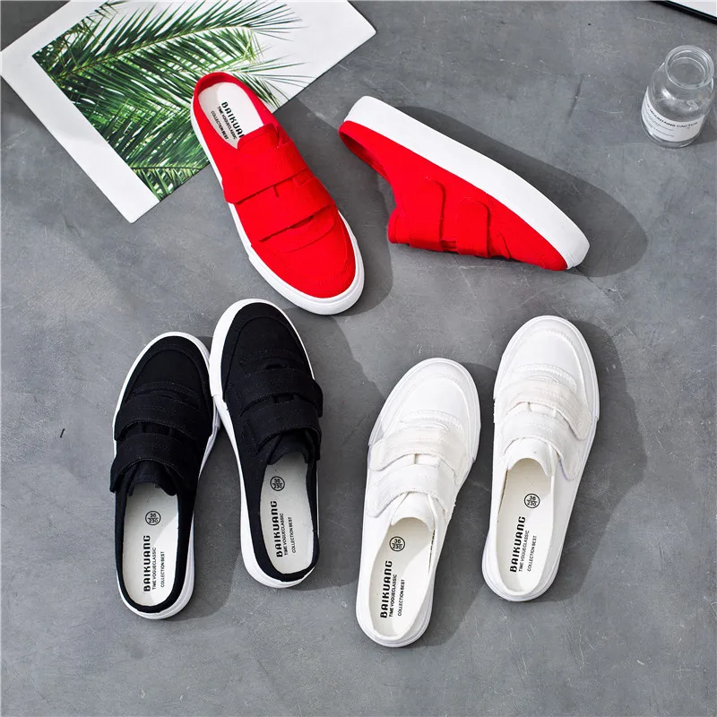 2018 г. Новая женская парусиновая обувь для лета, Женская парусиновая обувь с ремешком на пятке, без шнуровки, на липучке, однотонная повседнев...