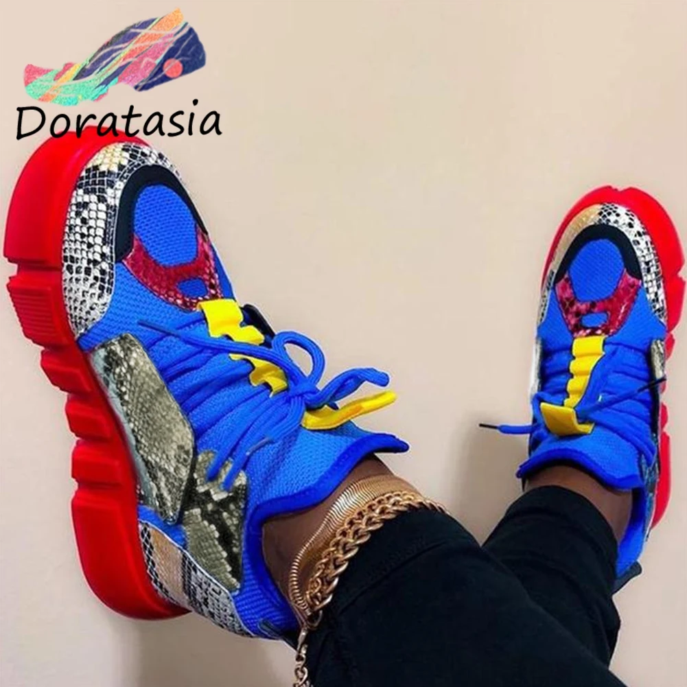 DORATASIA/модные брендовые разноцветные женские кроссовки на среднем каблуке; Сезон весна-лето; Женские кроссовки на платформе со змеиным узором; Женская обувь в стиле пэчворк