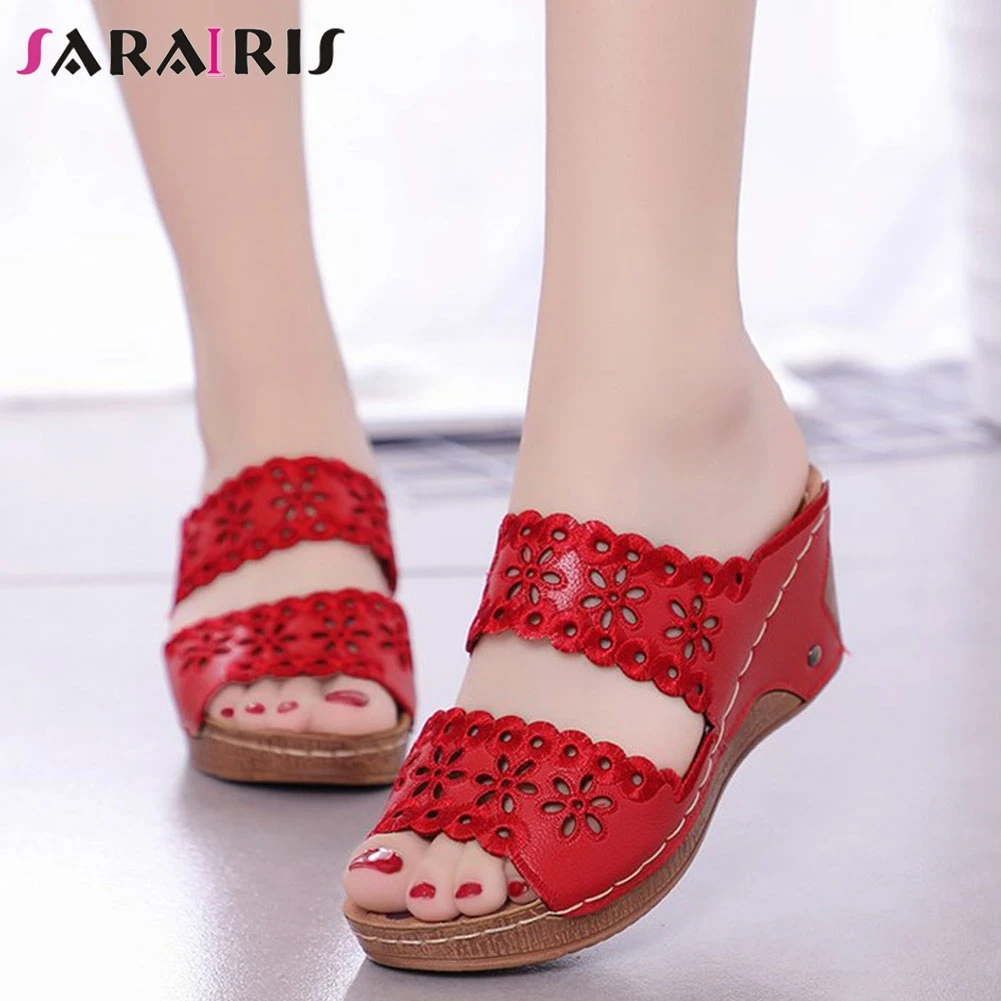 SARAIRIS/Повседневные шлепанцы без шнуровки на платформе; Новинка; Лидер продаж; удобные шлепанцы на высокой танкетке; женская летняя обувь с резным узором