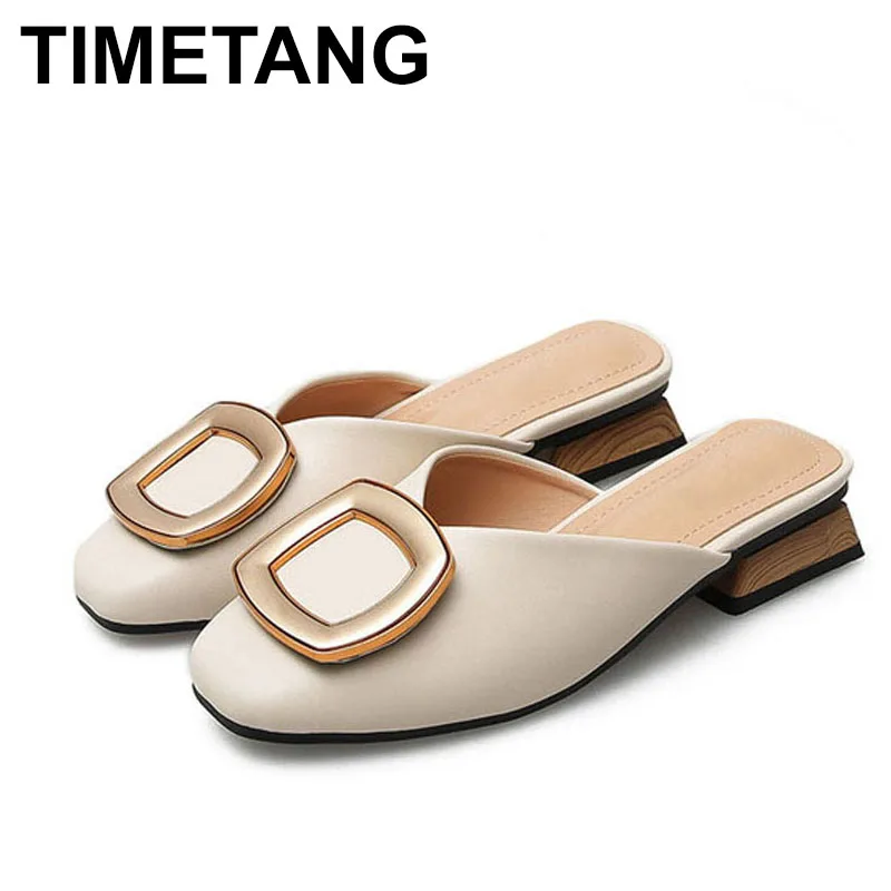 TIMETANG/женские туфли без задника с закрытым носком из натуральной кожи на низком каблуке; повседневные шлепанцы без задника с металлической пряжкой; лоферы с закрытым носком; большие размеры