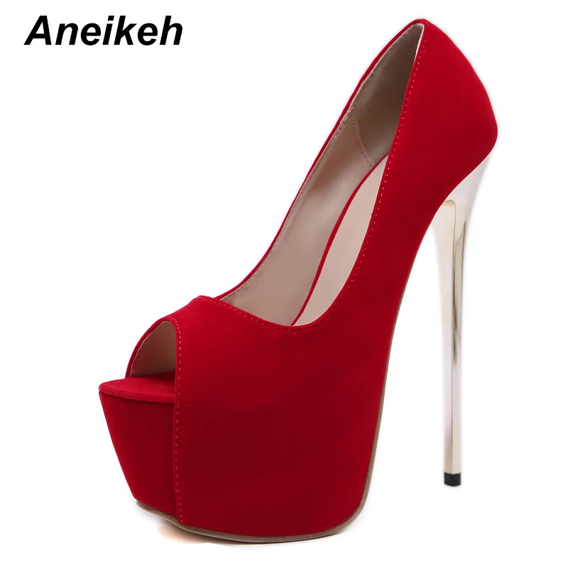 Aneikeh/2020 г. Весенние красные пикантные туфли-лодочки на платформе женские Фетиш-туфли на высоком тонком каблуке с открытым носком, для стриптиза, без шнуровки, для вечеринки, свадебные туфли, 42