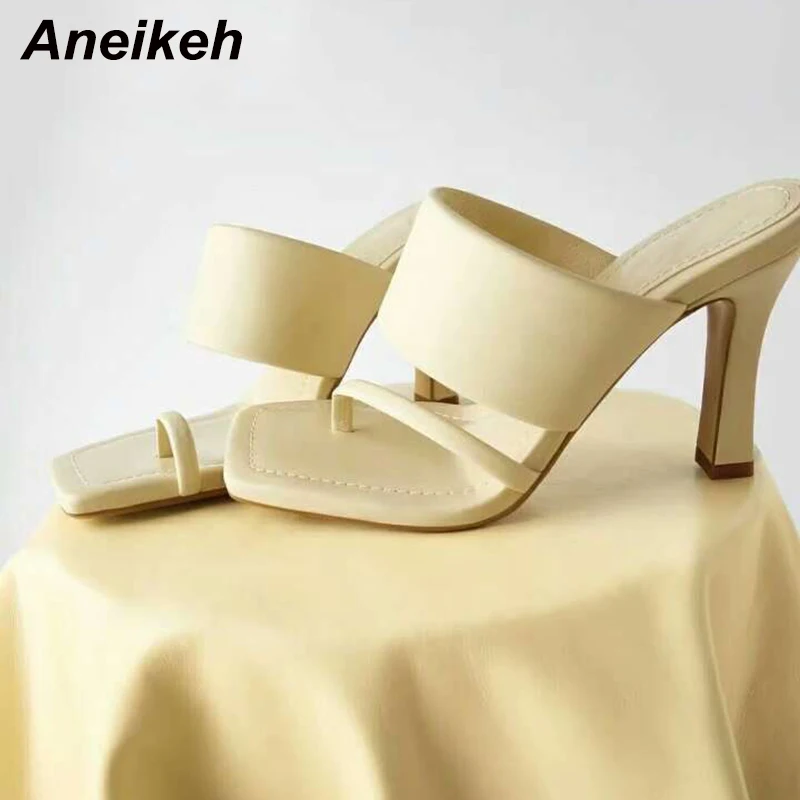Aneikeh/Новые Вьетнамки; шлепанцы на высоком каблуке; женские босоножки; элегантные босоножки с квадратным носком для подиума; обувь для вечеринок; Летние босоножки с одним ремешком