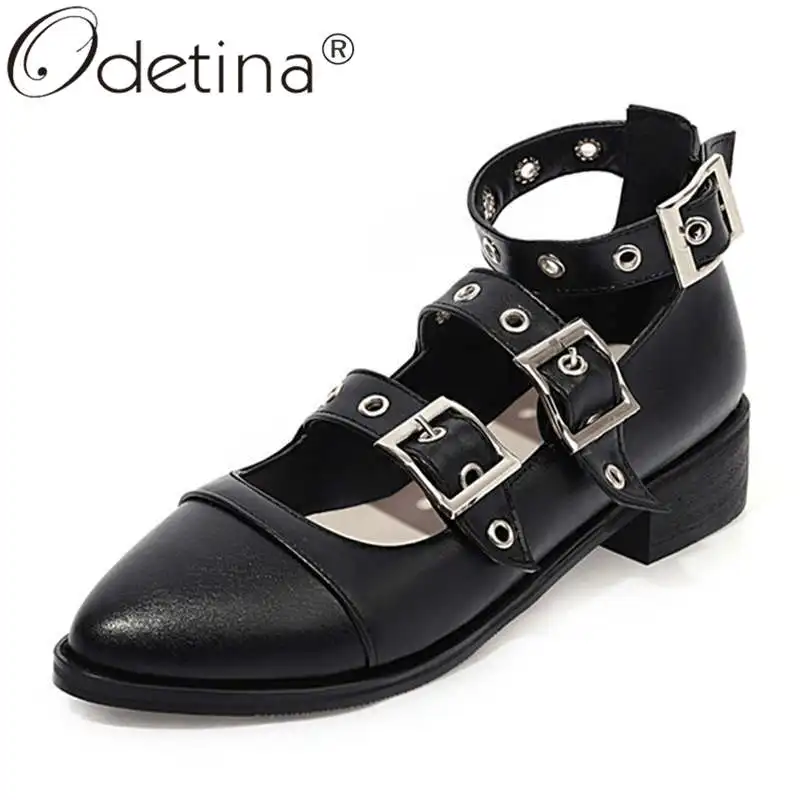 Odetina/Женская обувь Mary jane на массивном каблуке с пряжкой в три ряда; Женская Нескользящая повседневная обувь с миндалевидным носком и пряжкой на ремешке