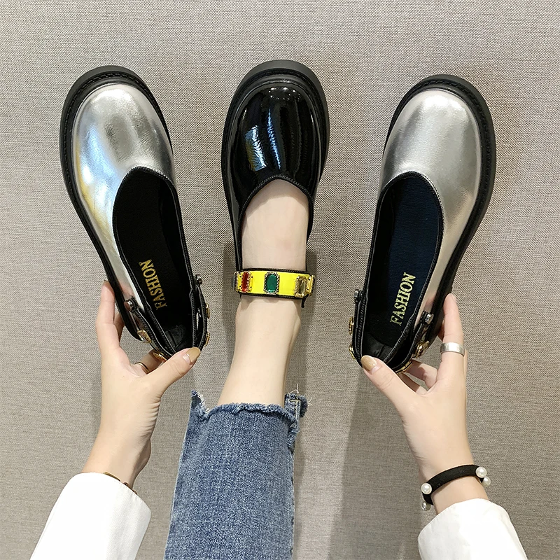 Осенняя женская обувь на плоской платформе; Лоферы со стразами; Женская обувь из лакированной кожи без шнуровки; Женские туфли-оксфорды с круглым носком в стиле Дерби