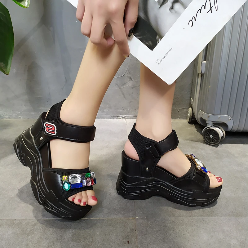 Lucyevre/модные летние туфли на очень высоком каблуке с разноцветными кристаллами; женские босоножки на танкетке с толстой подошвой; Sandalias Mujer; 2020