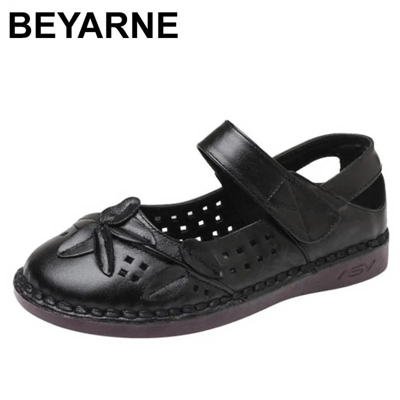 BEYARNE2019 женские кроссовки большого размера, повседневные, удобные, из мягкой кожи, с цветком на крючке, туфли на плоской подошве, Нескользящие...