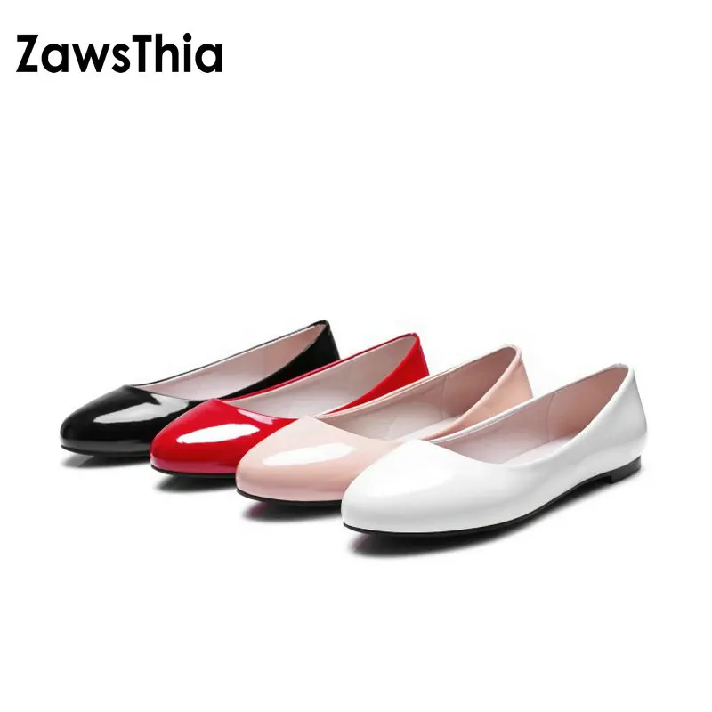ZawsThia 2019 Classis женские балетки на плоской подошве обувь женские лоферы слипоны балерина плоским лакированной из искусственной кожи круглый н...
