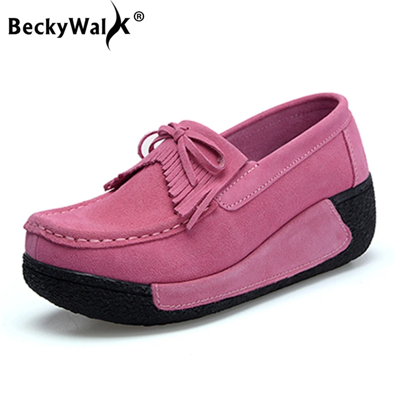 BeckyWalk/осенние кроссовки на толстой платформе, женская обувь, повседневная обувь из замши, женская обувь с кисточками, zapatos mujer LoaferWSH2893