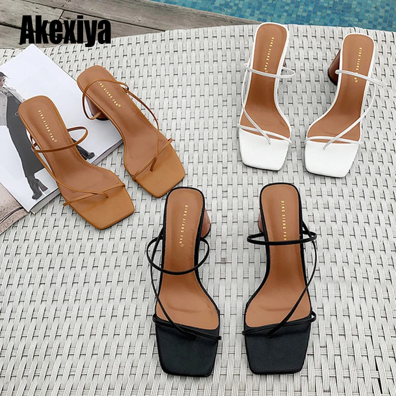 Шлепанцы на каблуке; женские модные сандалии; винтажные босоножки на высоком каблуке с квадратным носком и узкими ремешками; женская летняя обувь; s401