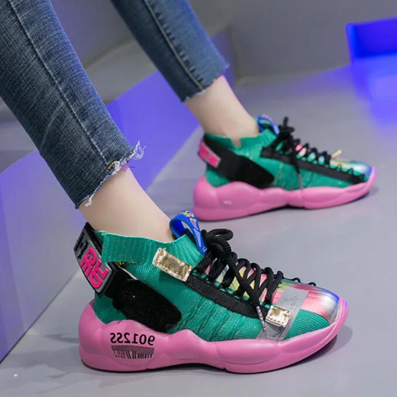 Женские кроссовки; коллекция 2020 года; женские носки; повседневная обувь на плоской подошве; женская спортивная обувь; цветная модная обувь