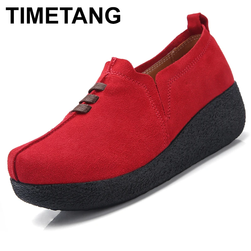 TIMETANG/Большие размеры 35-43, женские лоферы на плоской платформе с монетами, Замшевые Кожаные слипоны, Женская Весенняя обувь на плоской подошв...