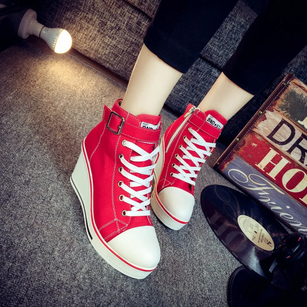 Прямая поставка; парусиновая обувь; женские кроссовки на танкетке и платформе; спортивная обувь на каблуке 8 см; Повседневная однотонная обу...