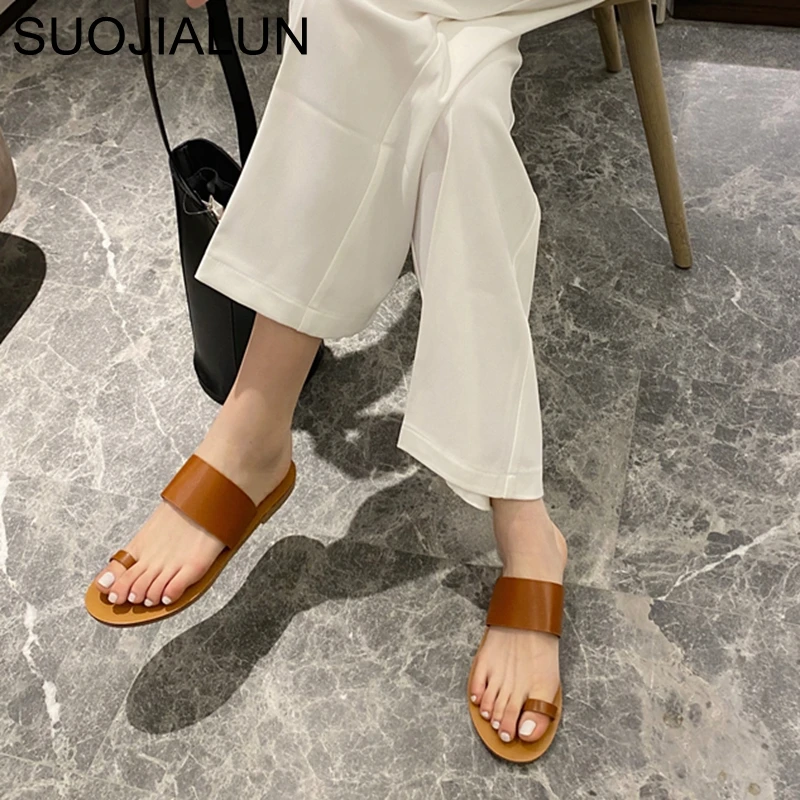 SUOJIALUN/новые женские Вьетнамки; повседневные летние пляжные шлепанцы на плоской подошве для улицы; сандалии для отдыха с открытым носком; Женские Простые фирменные шлепанцы без задника