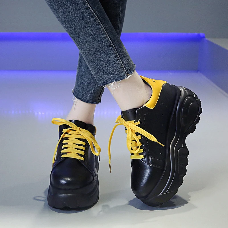 Rimocy/разноцветные женские кроссовки на массивном каблуке; цвет красный, черный; сезон весна; модная обувь на платформе и высоком каблуке; женская обувь на плоской подошве в стиле панк; Вулканизированная обувь