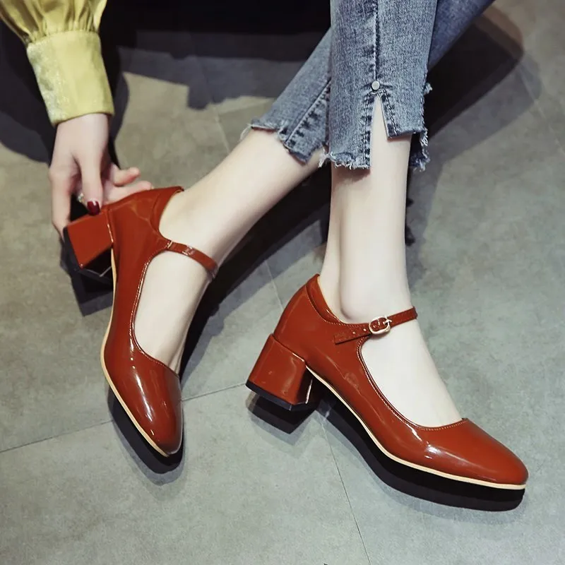 EOEODOIT/модные джинсовые туфли-лодочки в стиле ретро на среднем массивном каблуке с пряжкой на щиколотке, женские офисные туфли-лодочки из орг...