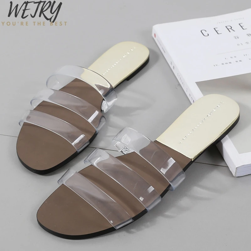 Женские сандалии на плоской подошве с открытым носком; модные летние туфли из прозрачного ПВХ; женские шлепанцы; пляжные женские сандалии