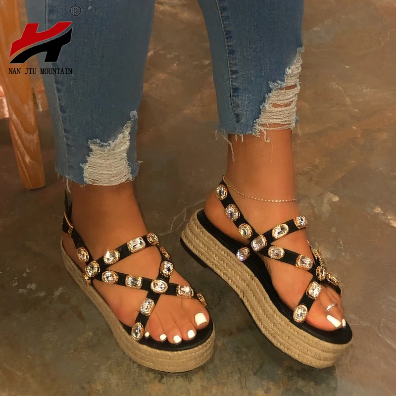 Женские сандалии на платформе NAN JIU, Летние удобные сандалии со стразами и открытым носком ручной работы, большие размеры 35-43, 2020