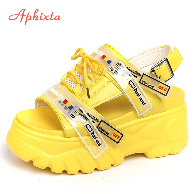 Aphixta/Босоножки на платформе 9 см; Женская обувь на танкетке и высоком каблуке; Женские летние шлепанцы на танкетке со шнуровкой и пряжкой; Zapatos Mujer; Женские сандалии