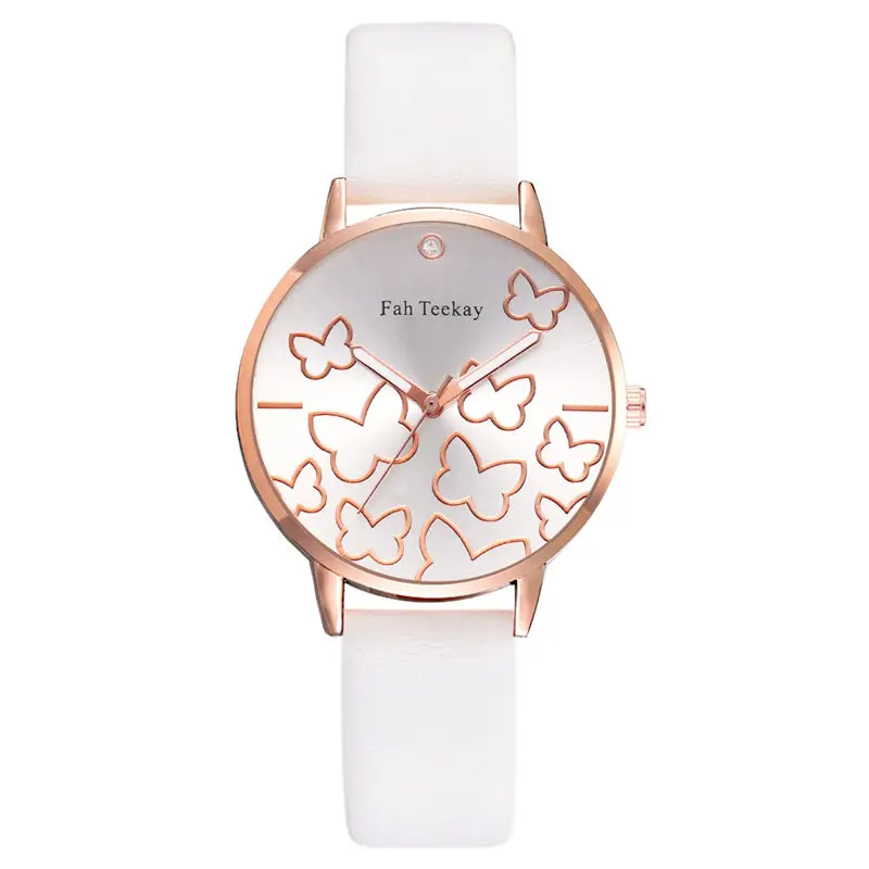 Женские кварцевые часы с бабочкой, повседневные часы с кожаным ремешком