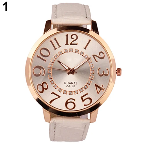 Мужские Женские Римский дизайн большие цифры горный хрусталь циферблат искусственная кожа кварцевые аналоговые наручные часы 93XN